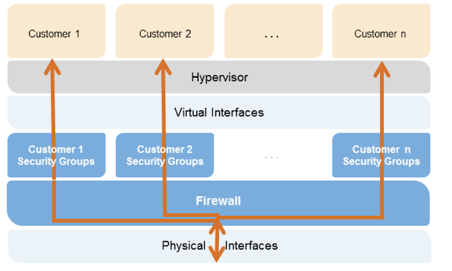 - Amazon VPC Security Groups provide a per-host stateful firewall, allowing you to specify traffic rules and define relationships to other security groups.